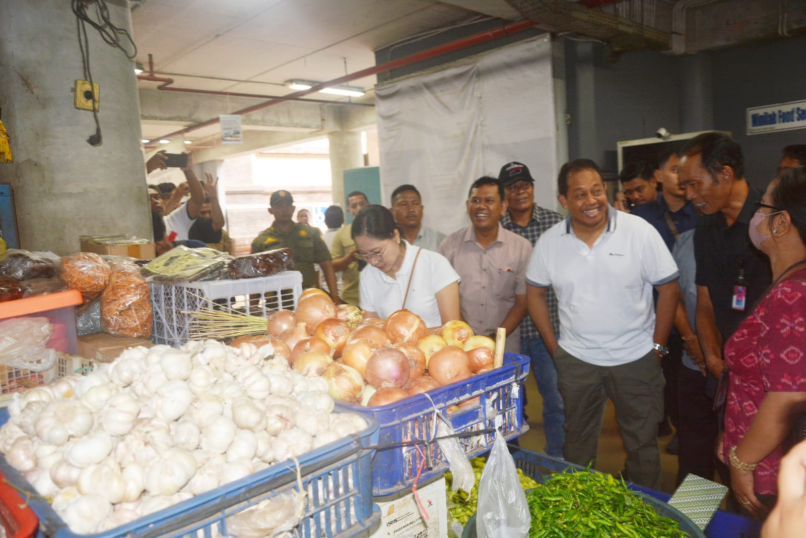 Peninjauan dimulai dari lantai satu pasar yang disediakan untuk beras, daging, ikan, buah dan sayuran. Serta lantai atas untuk rempah-rempah dan perlengkapan upacara Bali seperti sarung, payung dan keranjang. Pj Gubernur yang juga didampingi Kadisperindag Provinsi Bali, I Wayan Jarta juga mengunjungi fasilitas pendukung pasar seperti gudang penyimpanan/ transit barang, hingga toilet. Pj Gubernur Bali juga berbincang langsung dengan sejumlah pedagang untuk mengetahui harga dan ketersediaan pasokan. Selain itu, Ny drg Ida Mahendra Jaya juga nampak langsung berbelanja sejumlah kebutuhan pokok.