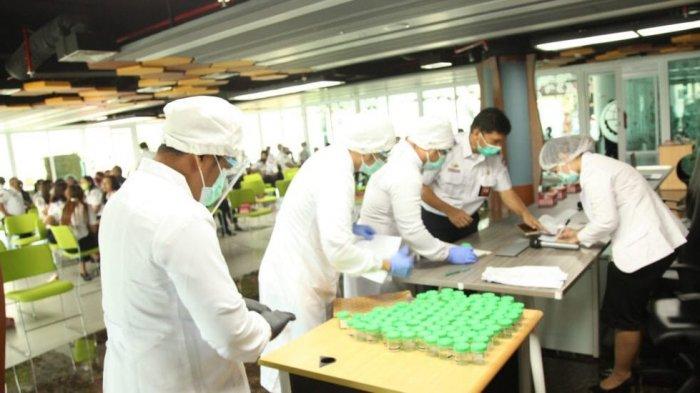 Seluruh pegawai secara bergantian mengambil sampel urine didampingi oleh petugas medis dari Laboratorium Prodia.