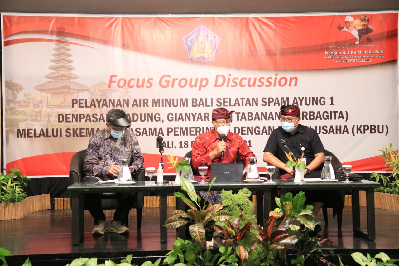 DENPASAR,BALIPUSTAKANEWS – Dalam rangka mendukung Visi Gubernur dan Wakil Gubernur Bali, yaitu “Nangun Sat Kerthi Loka Bali, Melalui Pola Pembangunan Semesta Berencana” bertujuan untuk mewujudkan Bali Era Baru dengan menata secara fundamental dan komprehensif pembangunan Bali yang mencakup tiga aspek utama yakni Alam Bali, Krama Bali, dan Kebudayaan Bali, dengan berdasarkan nilai-nilai Tri Hita Karana, yang bersumber dari nilai-nilai Sad Kerthi, dan merupakan salah satu dari nilai Sad Kerthi adalah Penyucian Sumber Air, atau disebut pula Danu Kerthi. Penyucian Sumber Air dilakukan guna menjaga sumber kehidupan yang esensial bagi manusia dan makhluk hidup lainnya serta menjaga keseimbangan alam, maka perlu dilakukan sejumlah upaya mensosialisasikan dan mewujudkannya dengan sejumlah cara. Hal ini dinyatakan oleh I Gede Indra Dewa Putra selaku Asisten Pemerintahan dan Kesra Setda Provinsi Bali saat membuka Focus Group Discussion (FGD) Pelayanan Air Minum Bali Selatan SPAM Ayung 1 Denpasar, Badung, Gianyar dan Tabanan (Sarbagita) melalui skema Kerjasama Pemerintah dengan Badan Usaha (KPBU), di Prime Plaza Hotel, Denpasar, Kamis (18/2).