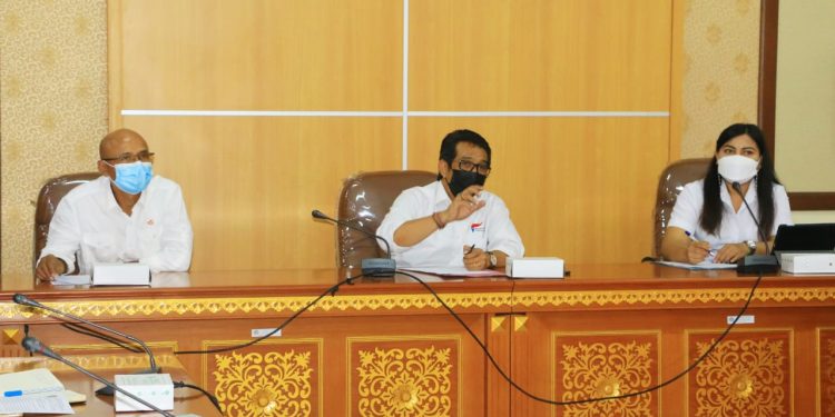 BALIPUSTAKANEWS,DENPASAR – Dinas Pendidikan Pemuda dan Olahraga (Disdikpora) Provinsi Bali memastikan tidak akan ada lagi lulusan SMP yang tercecer karena tidak mendapat sekolah SMA Negeri atau Swasta pada Penerimaan Peserta Didik Baru (PPDB) jenjang SMA dan SMK Tahun Pelajaran 2021/2022 di Provinsi Bali. Penegasan ini disampaikan Kadisdikpora Provinsi Bali Dr. KN. Boy Jayawibawa saat menggelar jumpa pers bersama para awak media di ruang rapat Disdikpora Provinsi Bali, Rabu (19/5).