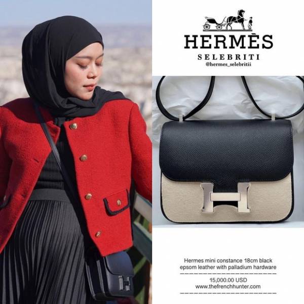 Seperti dinukil dari akun Instagram @hermes_selebritii, rupanya tas selempang mini itu adalah tas Hermes Mini Constance 18cm Black Epsom Leather with Palladium Hardware.