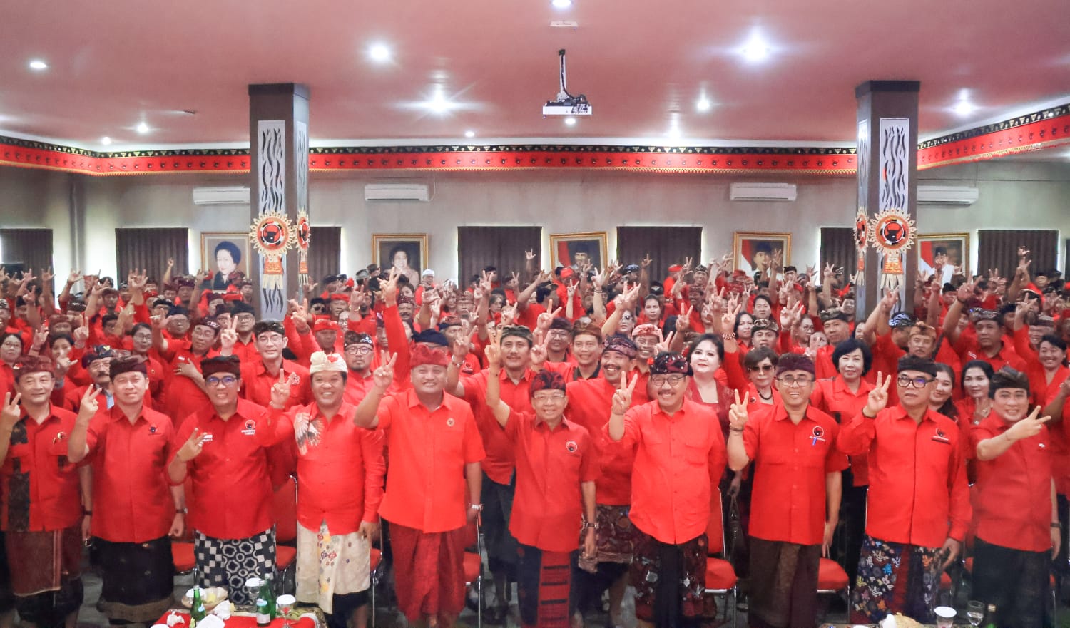 Wayan Artha Dipa, Bupati dan Wakil Bupati Bangli, Sang Nyoman Sedana Arta dan I Wayan Diar, Bupati Gianyar, Made Mahayastra dan Bupati Klungkung, Nyoman Suwirta hingga semua Ketua DPRD dan Petugas Partai di DPRD Provinsi/Kota/Kabupaten se-Bali dengan menggunakan busana Adat Bali solid mengacungkan 2 jari dihadapan Ketua DPD PDI Perjuangan Provinsi Bali, Wayan Koster sebagai kode dukungan, agar kepemimpinan Wayan Koster menjadi Gubernur Bali berlanjut di periode kedua.