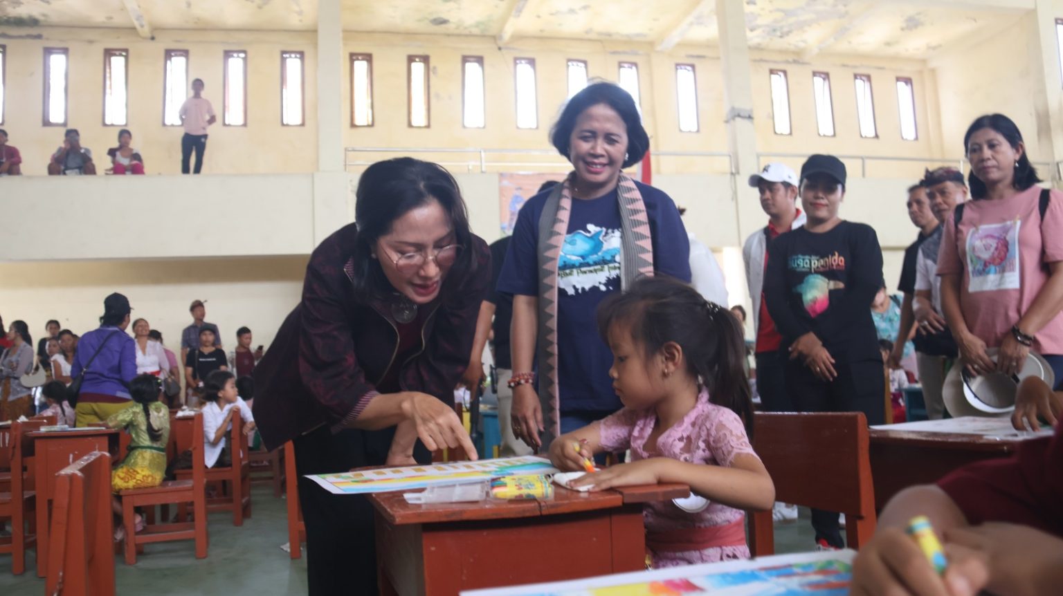 BALIPUSTAKANEWS, KLUNGKUNG – Penjabat (Pj.) Ketua Dewan Kerajinan Nasional Provinsi Bali Ny. Drg. Ida Mahendra Jaya hadir dalam rangkaian acara Nusa Penida Festival hari kedua yaitu Lomba Mewarnai Anak-Anak TK bertempat di GOR Sampalan, Nusa Penida, Klungkung pada Jumat (6/10).