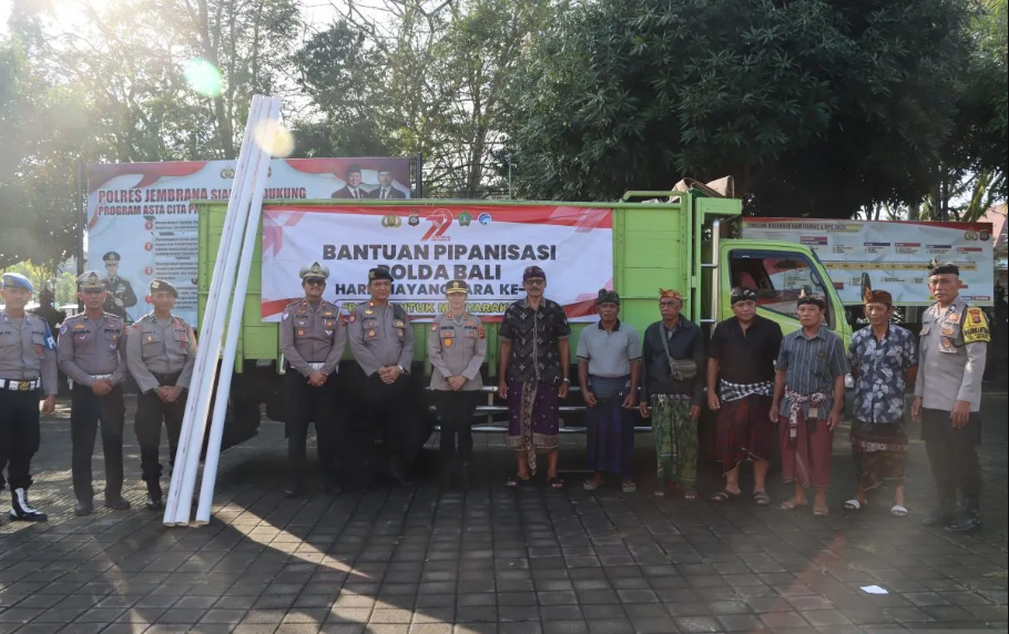 Balipustakanews.com, Jembrana – Polda Bali melalui Direktorat Lalu Lintas memberikan bantuan jaringan pipa air bersih bagi ratusan keluarga di Kabupaten Jembrana sebagai bagian dari peringatan HUT ke-75 Bhayangkara.