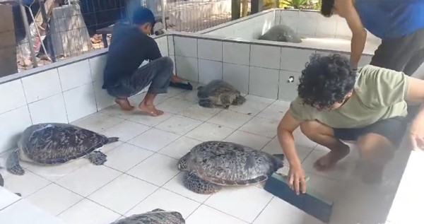 “Polisi menyelamatkan 15 ekor penyu hijau dengan berbagai ukuran dan umur yang dititipkan kepada Kurma Asih,” kata Anom.