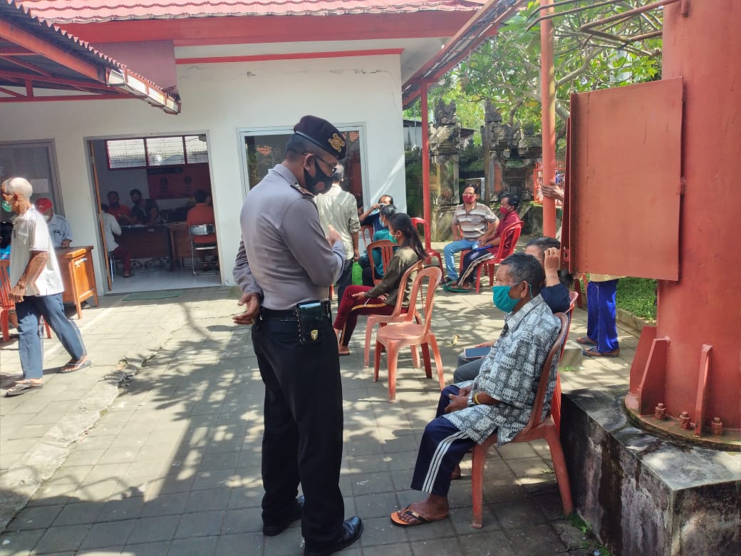 Dalam kesempatan tersebut Pawas Ipda I Wayan Darmaja dan anggota juga melaksanakan Pendisiplinan kepada masyarakat yang sedang mengantri dilokasi.