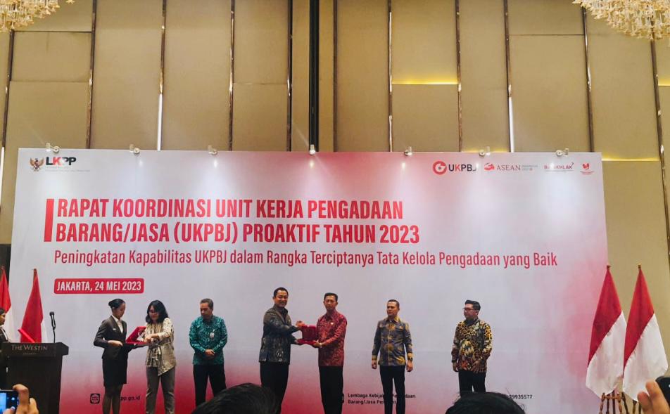 BALIPUSTAKANEWS, JAKARTA – Kerja keras jajaran Pemprov Bali dalam meningkatkan tata kelola pemerintahan yang baik, terutama indeks tata kelola Pengadaan Barang dan Jasa membuahkan hasil. Provinsi Bali menjadi salah satu dari 12 Unit Kerja Pengadaan Barang/Jasa (UKPBJ) di lingkungan KKementerian/Lembaga/Pemerintah Daerah yang mendapat Penghargaan UKPBJ Level 3 Proaktif. Penghargaan diserahkan langsung oleh Kepala Lembaga Kebijakan Pengadaan Barang/Jasa Pemerintah RI Hendrar Prihadi bertempat di Hotel The Westin Jakarta, Jakarta Selatan, pada Rabu (24/5/2023). Dalam kesempatan tersebut, Provinsi Bali diwakili oleh Staf Ahli Gubernur Bali Wayan Serinah.