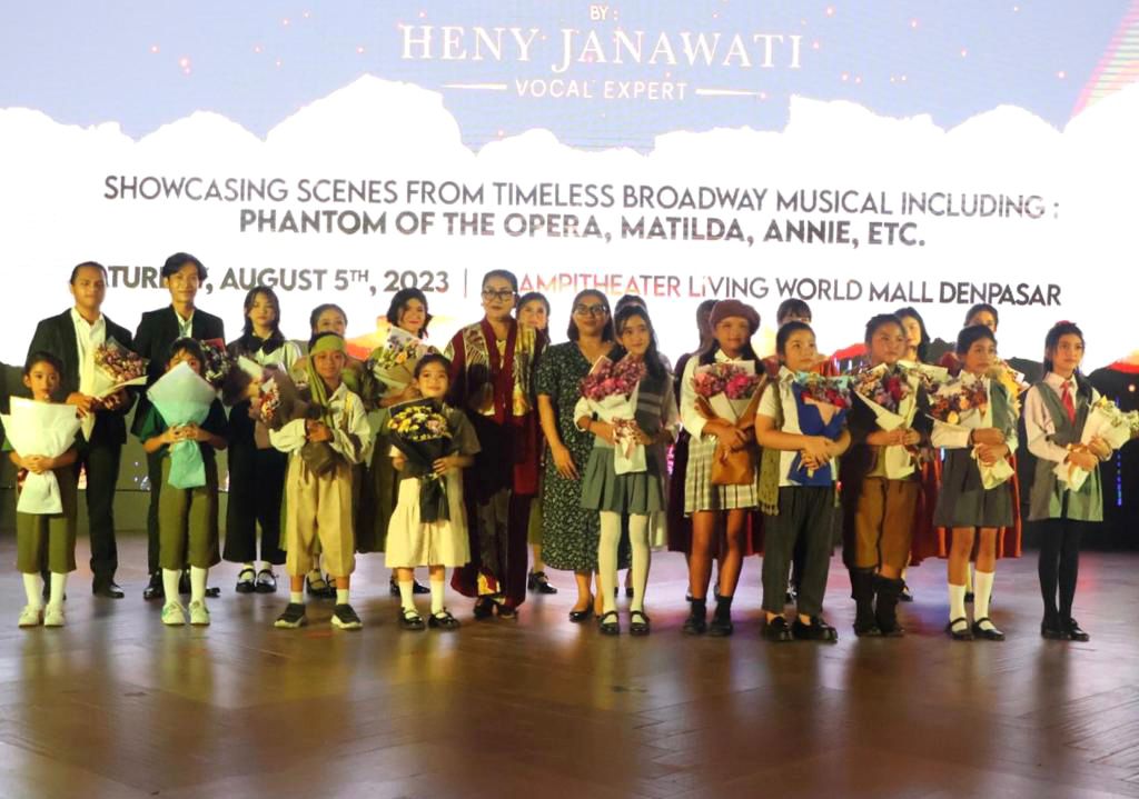BALIPUSTAKANEWS, DENPASAR – Ny. Putri Koster berkesempatan menyaksikan pertunjukan Broadway Goes to Living World bertempat di Amphitheater Mall Living World, Denpasar, pada Sabtu (5/8/2023). Pada kesempatan tersebut, pendamping orang nomor satu di Bali itu memuji dan mengapresiasi karya ahli musik Heny Janawati yang dibawakan oleh anak-anak baik dari usia kecil hingga remaja.