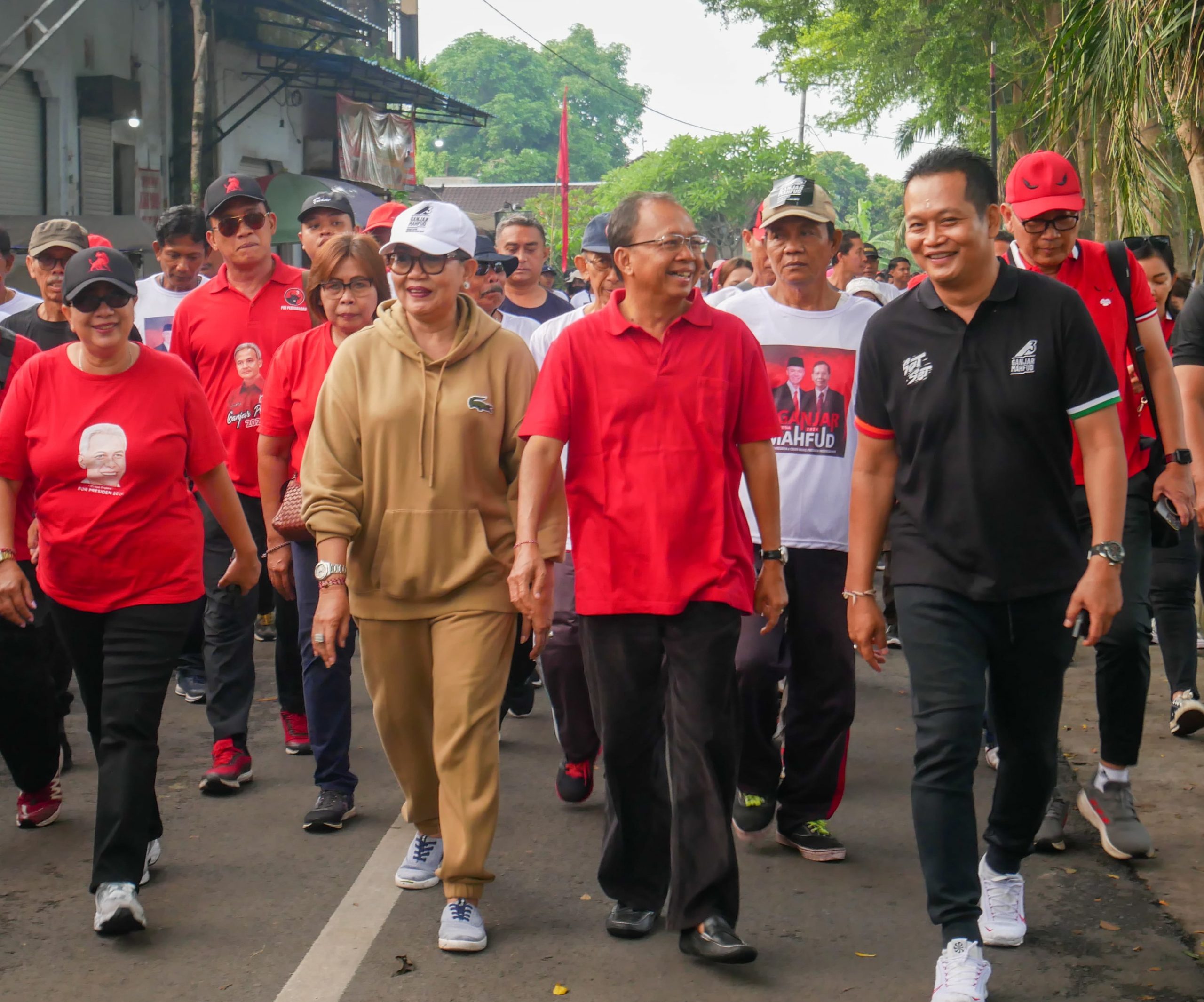 Ketua DPD PDI Perjuangan Provinsi Bali, DR. Ir. Wayan Koster, MM memimpin langsung Creative Fun Walk di Kabupaten Jembrana didampingi Ketua DPC PDI Perjuangan Kabupaten Jembrana I Made Kembang Hartawan. Puluhan ribu masyarakat Jembrana yang hadir dengan menggunakan baju kaos Ganjar-Mahfud bernomor 3 dihibur langsung oleh penyanyi Bagus Wirata. (PR)
