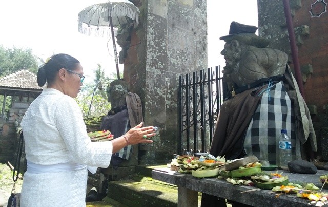 BALIPUSTAKANEWS- Pura yang terletak di Pura Dalem Kaler Belega, Desa Belega, Kecamatan Blahbatuh, Gianyar, Bali bisa dibilang unik dibandingkan pura lainnya. Hal ini dikarenakan di pura ini ada patung polisi. Tak hanya sekadar patung, akan tetapi patung ini juga menggunakan seragam lengkap layaknya polisi.