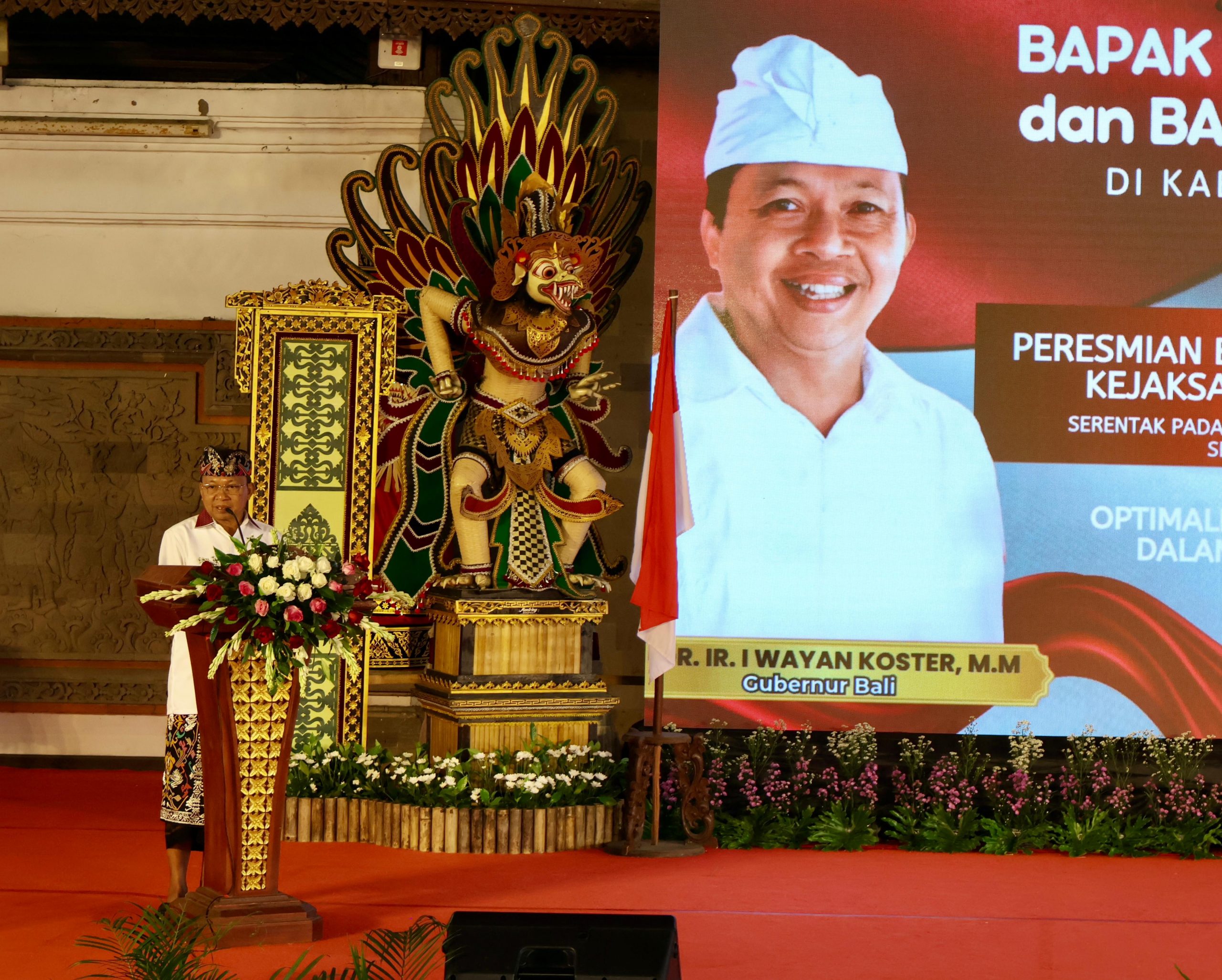 Balipustakanews.com, Gianyar – Gubernur Bali, Wayan Koster bersama dengan Wakil Gubernur Bali, Giri Prasta menghadiri peresmian Bale Kertha Adhyaksa Kejaksaan Negeri Gianyar di Balai Budaya Kabupaten Gianyar, Rabu (21/5).