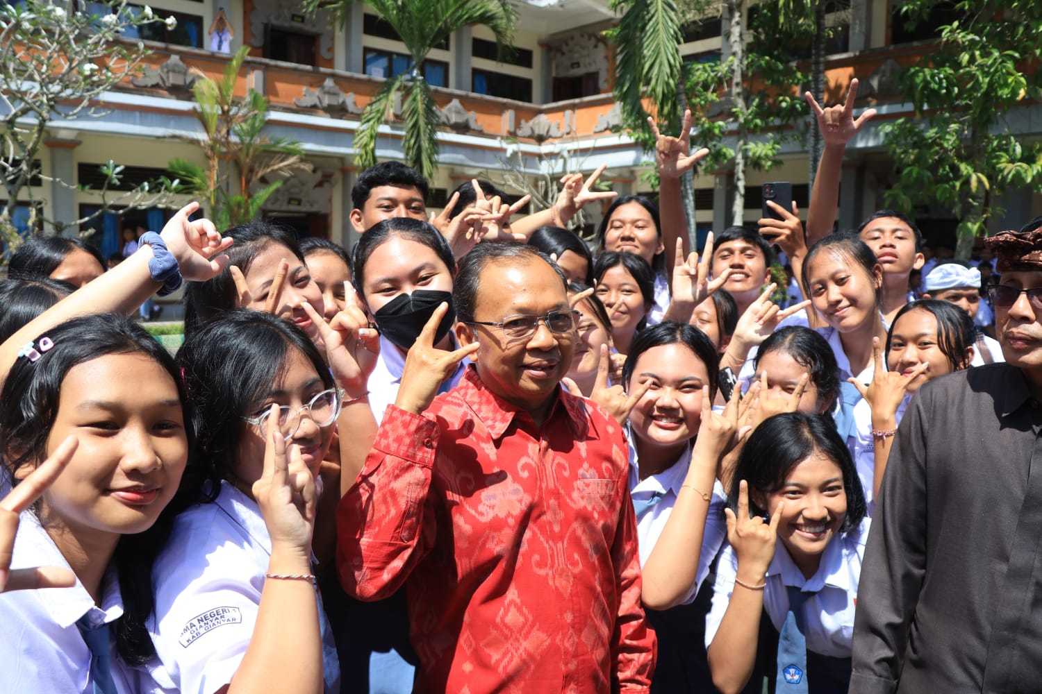 Kepemimpinan Gubernur Bali, Wayan Koster dengan visi NANGUN SAT KERTHI LOKA BALI melalui POLA PEMBANGUNAN SEMESTA BERENCANA menuju BALI ERA BARU sangat diapresiasi oleh para Guru dan ribuan siswa SMA/SMK, karena latar belakang Gubernur Bali, Wayan Koster yang pernah berada dalam garis kemiskinan bersama keluarganya di Desa Sembiran, Buleleng ternyata mampu mewujudkan program pembangunan Bali yang monumental dan