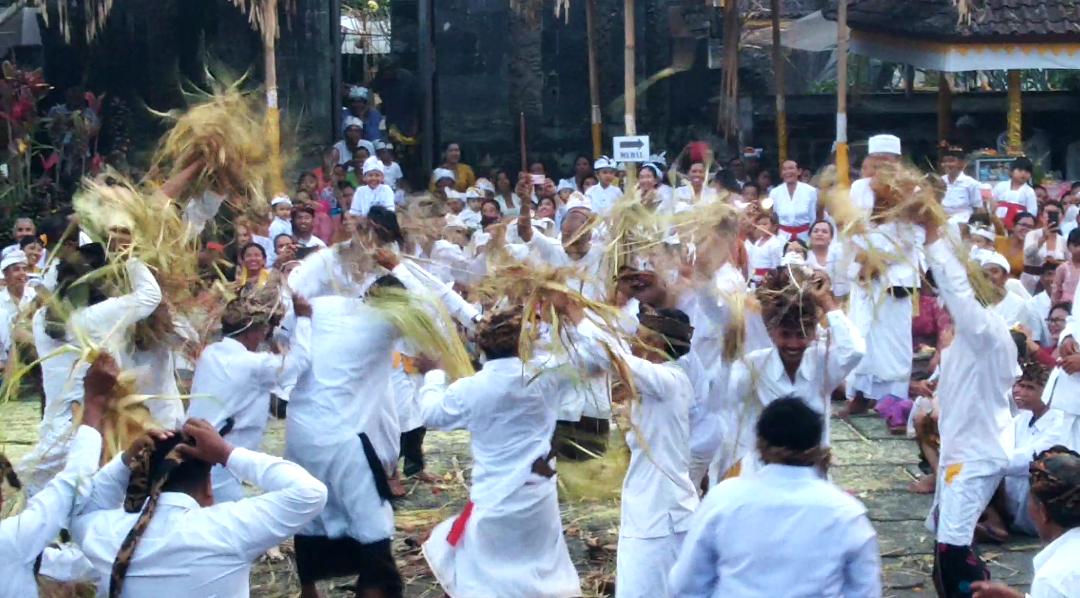 BALIPUSTAKANEWS – Rangkaian akhir Aci Usaba Goreng di Desa Adat Geriana Kangin, Desa Duda Utara, Selat, Karangasem ditutup dengan ritual “Matigtig” atau Siat Sampian.
