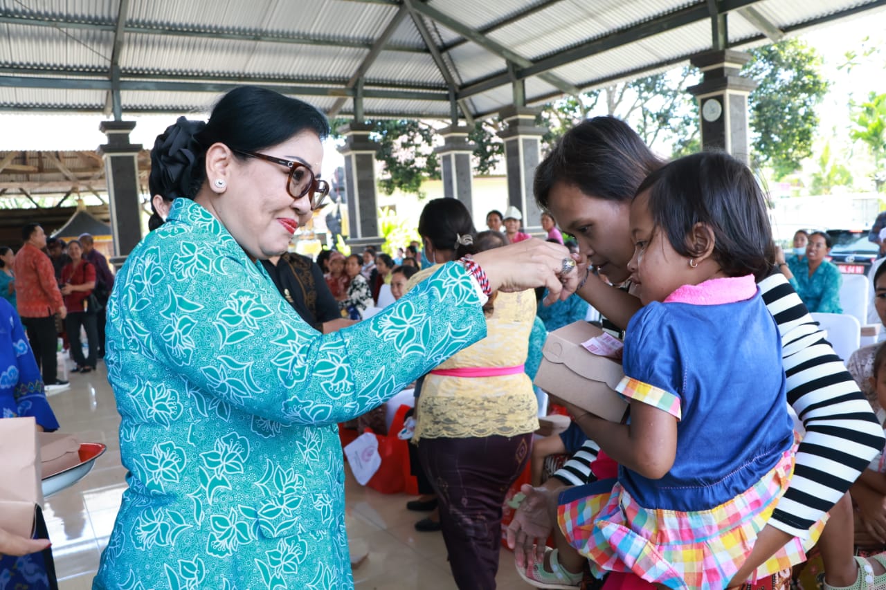 Aksi sosial yang digelar TP PKK Prov Bali kali ini menggandeng berbagai pihak untuk turut menyerahkan bantuan kepada 50 orang masyarakat kurang mampu, yang terdiri dari masing-masing 10 orang lansia, ibu hamil, penyandang disabilitas, kader PKK dan balita. Berupa 1 ton beras masing-masing 20 kg, 50 krat telur masing-masing 1 krat, 80 Kotak susu untuk balita masing-masing 8 kotak, dan 80 kotak susu untuk lansia, ibu hamil, penyandang disabilitas dan kader PKK masing-masing dua kotak.