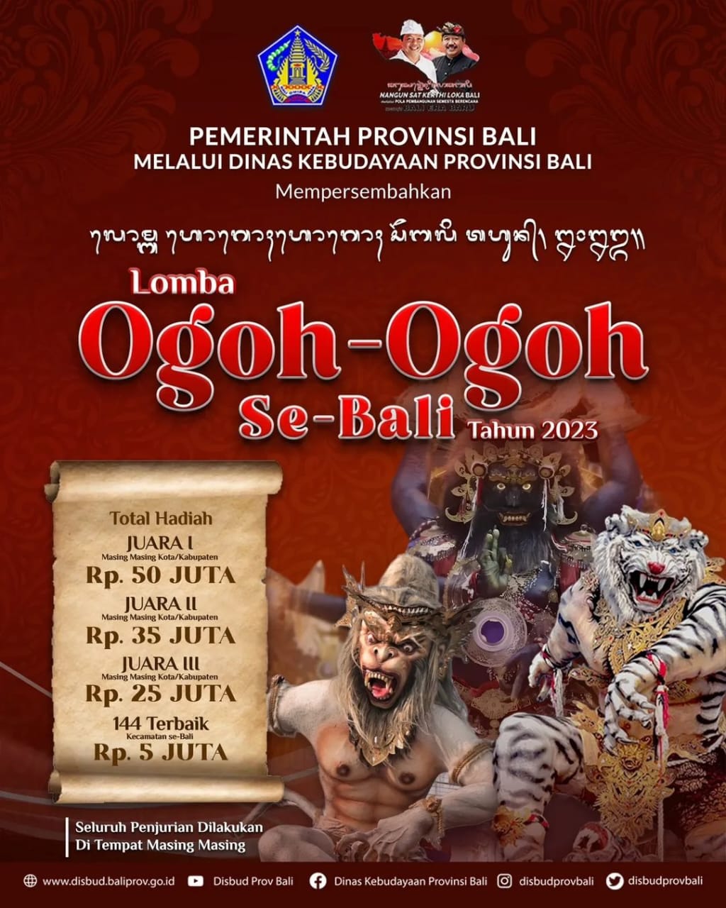 Gubernur Wayan Koster akan memberikan penghargaan bagi juara Lomba Ogoh-Ogoh 2023 dengan rincian: