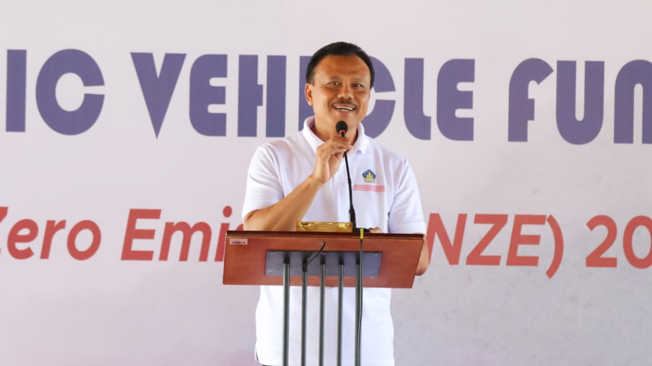 BALIPUSTAKANEWS, DENPASAR – Ditandai dengan pemukulan ketipung, Sekretaris Daerah Provinsi Bali Dewa Made Indra membuka secara resmi kegiatan Bali Electric Vehicle (EV) Fun Touring, di Wantilan BPPW Taman Hutan Raya, Pemogan, Denpasar Selatan, Minggu (27/8) pagi.