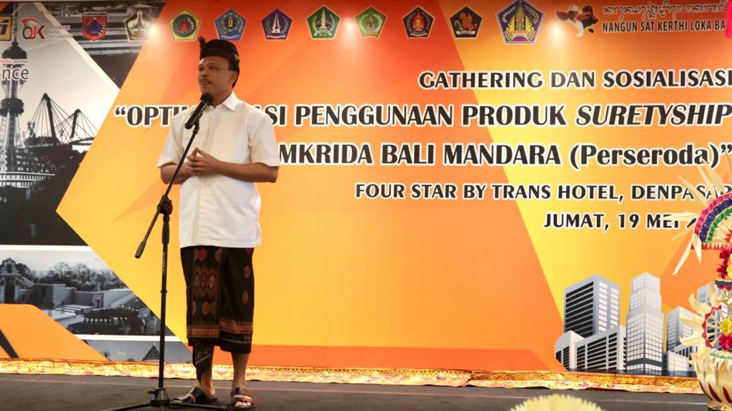 BALIPUSTAKANEWS, DENPASAR – Sekretaris Daerah Provinsi Bali sekaligus Komisaris Utama PT. Jamkrida Bali Mandara (JBM) Dewa Made Indra mengajak pemerintah daerah di Bali, baik tingkat Provinsi dan Kabupaten untuk tetap menggunakan produk UMKM Bali yang dijamin oleh PT. JBM dalam produk Suretyship. Hal itu dikatakannya saat menjadi keynote speaker dalam acara Gathering dan Sosialisasi oleh PT. JBM dengan tema “Optimalisasi Penggunaan Produk Suretyship PT. Jamkrida Bali Mandara” bertempat di Four Star Trans Hotel, Renon, Denpasar, pada Jumat (19/5/2023).