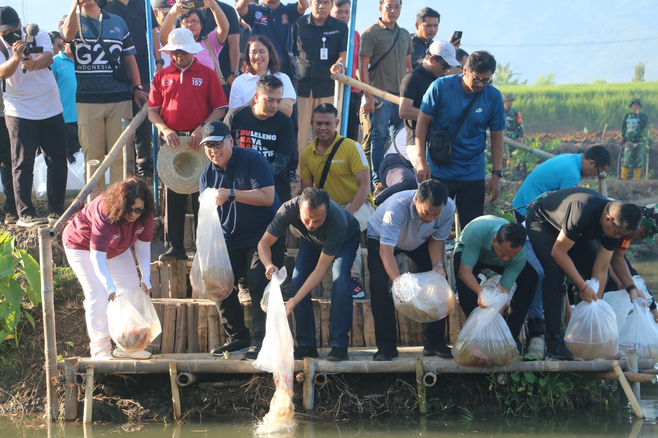 Gerakan tanam cabai juga diikuti pencanangan smart farming, penanaman bibit pohon penghijauan dan penebaran bibit ikan pada kolam yang berada di areal lahan. (PR)