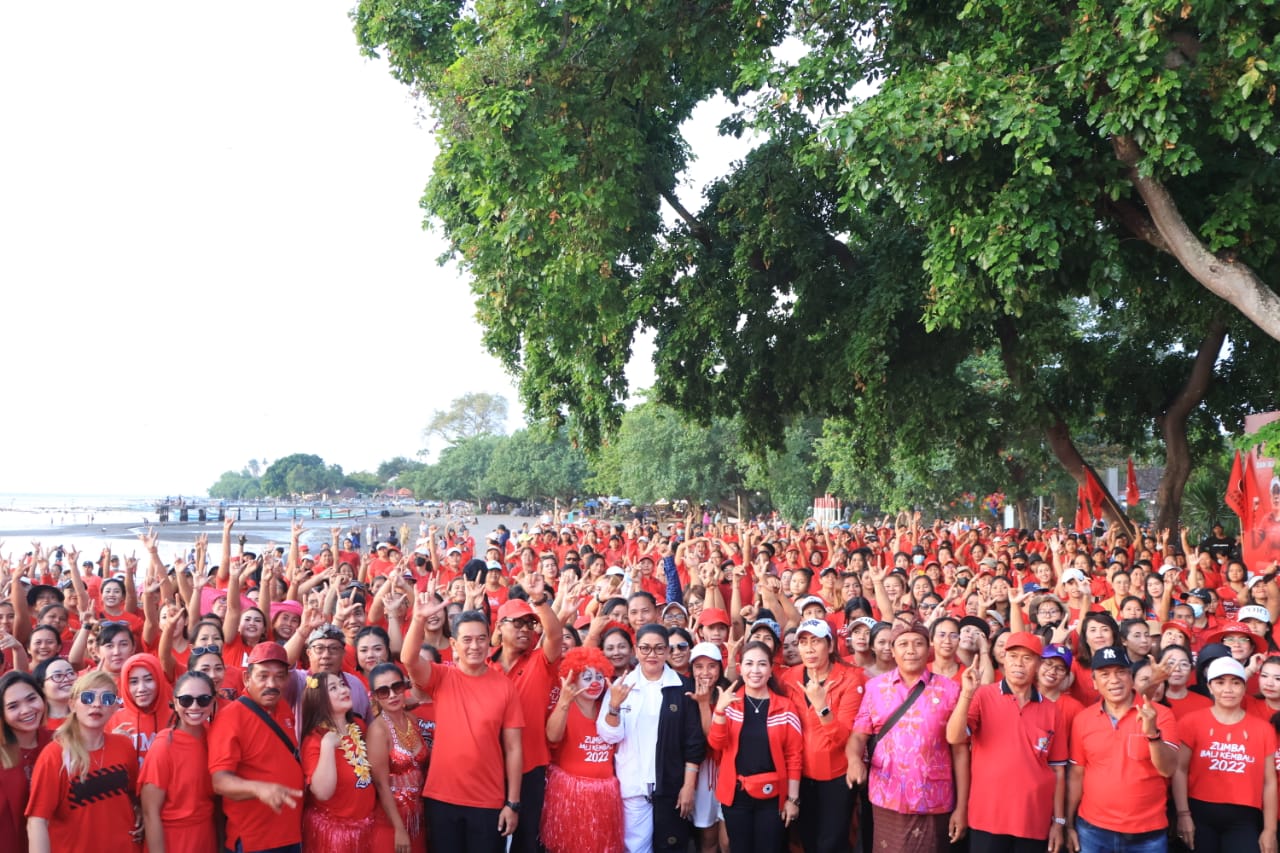 BALIPUSTAKANEWS, LOVINA – Ketua Tim Penggerak (TP) PKK Provinsi Bali Ny Putri Suastini Koster mengajak kaum ibu, untuk tetap energik dan bersemangat dalam menjalankan tugasnya sehari-hari. “Luar biasa, ibu-ibu yang energik di Buleleng. Saya harap ibu-ibu tetap energik dan bersemangat karena jika perempuan maju NKRI maju. Perempuan akan melahirkan generasi muda yang tangguh untuk Indonesia,” kata Ny Putri Koster saat menghadiri dan membuka Acara Senam Bersama Sunset Sporty Akbar Serangkaian Bulan Bung Karno Tahun 2023 Kabupaten Buleleng bertempat di Pantai Binaria Lovina, Desa Kalibukbuk, Buleleng pada Senin (19/6) sore.
