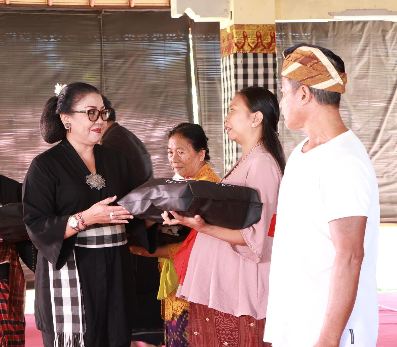 Sementara Bendesa Madya MDA Kota Denpasar A.A Sudiana menyampaikan terima kasih kepada Manggala Utama PAKIS MDA Bali Ny. Putri Koster sudah menyempatkan untuk mengunjungi desanya dan berbagi dengan masyarakat. Ia pun mengungkapkan apresiasi terhadap PAKIS MDA Bali dan Gubernur Wayan Koster yang begitu peduli dengan adat dan kebudayaan Bali.