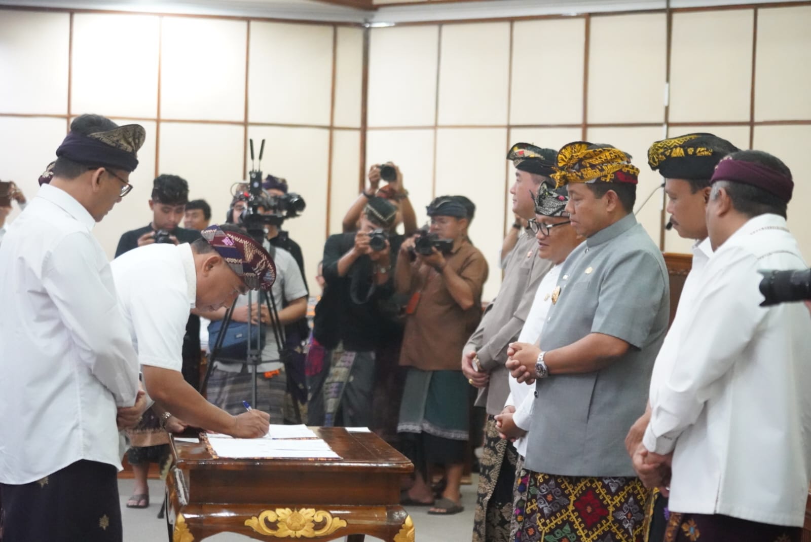 BALIPUSTAKANEWS, DENPASAR – Penjabat (PJ) Gubernur Bali S.M Mahendra Jaya secara langsung melakukan penandatanganan dan penyerahan Naskah Perjanjian Hibah Daerah (NPHD) secara serentak (seluruh Kabupaten/Kota di Bali), yang menjadi salah satu penanda kesiapan melaksanakan tahapan Pilkada di Bali, terkait anggaran untuk kebutuhan Pilkada 2024 yang sudah tersedia. Penyerahan dilakukan di Gedung Wiswa Sabha Utama, Kantor Gubernur Bali, Denpasar, Kamis (9/11).