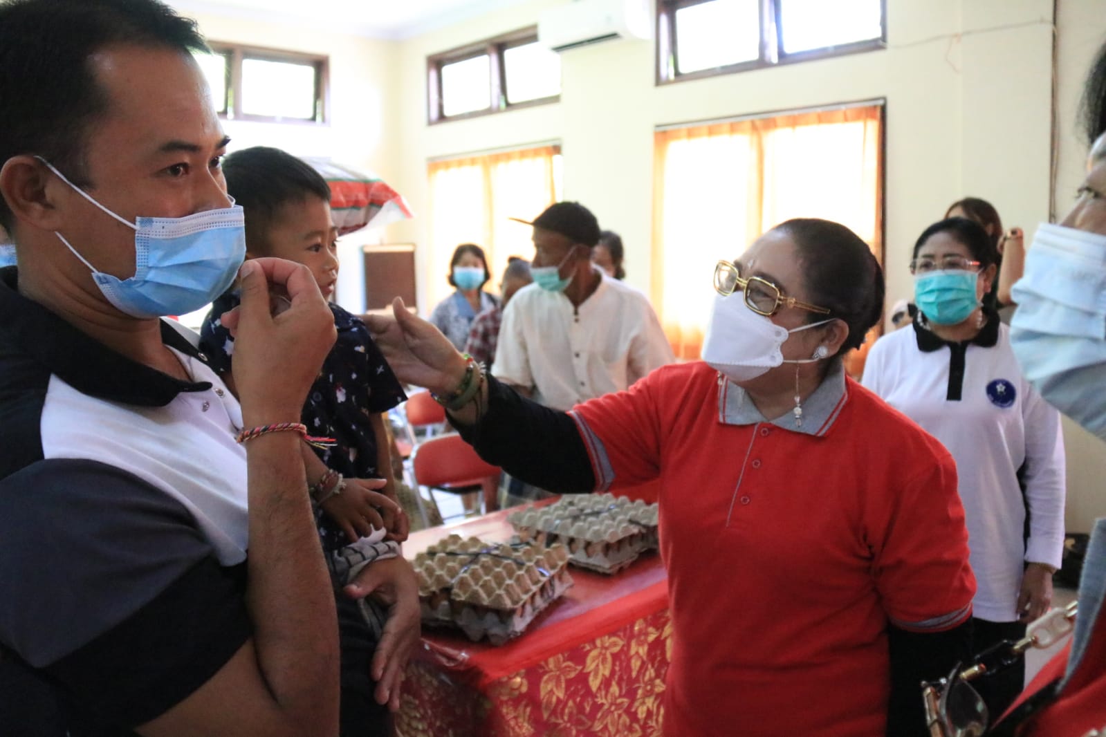 BALIPUSTAKANEWS,DENPASAR – Serangkaian peringatan hari jadi ke-59, Badan Kerjasama Organisasi Wanita (BKOW) Provinsi Bali yang diketuai Ny. Tjokorda Putri Hariyani Ardhana Sukawati (Ny.Cok Ace) melaksanakan kegiatan bakti sosial. Bakti sosial yang digelar Sabtu (23/4/2022) menyasar kelompok lansia, anak stunting dan penyandang disabilitas (difabel) pada tiga kecamatan di Kabupaten Karangasem yaitu Rendang, Selat dan Sidemen. Bakti sosial dipusatkan di Kantor Camat yang diawali di Kantor Camat Rendang lanjut Kantor Camat Selat dan berakhir di Kantor Camat Sidemen. Selain diikuti jajaran pengurus inti BKOW Bali, kegiatan bakti sosial juga berkolaborasi dengan Ikatan Bidan Indonesia (IBI) Bali serta Persatuan Istri Dokter Hewan Indonesia (PIDHI) Bali. Di tiga lokasi, rombongan yang dipimpin Ny. Cok Ace menyerahkan bantuan sembako berupa beras, telur, gula dan minyak goreng kepada 10 orang penerima. Khusus untuk anak stunting, BKOW memberi bingkisan tambahan berupa susu.