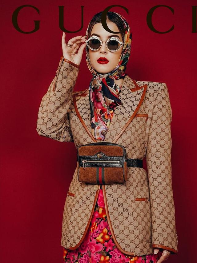 Beauty vlogger berdarah Arab ini tampil classy dengan mix and match outfit Gucci di Instagramnya. Tasya memadukan blazer warna cokelat dengan scarf dan rok bermotif bunga yang senada. Saudara kembar Tasyi Atasyia ini juga memakai clutch Gucci dan wedges untuk mempercantik tampilannya.