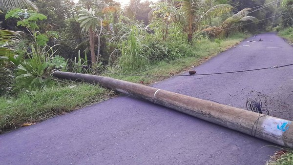 Kelian Banjar Dinas Babakan I Made Intaran mengatakan awalnya pohon jenis santen di wilayah itu tumbang, lalu menimpa kabel milik PLN. Walhasil, tiang listrik yang ada di sebelah selatannya ikut tumbang dan menutup seluruh akses jalan.