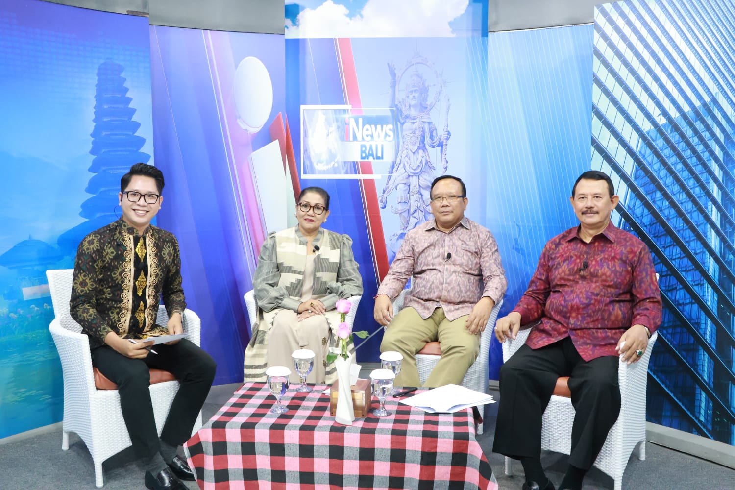 BALIPUSTAKANEWS, DENPASAR – Ketua TP PKK Provinsi Bali, Ny. Putri Koster tidak hanya gencar turun langsung ke tengah masyarakat melalui kegiatan aksi sosialnya, tetapi juga terus melakukan sosialisasi ke tengah masyarakat terkait program pemerintah. Dengan menghadirkan dua narasumber yaitu Koordinator Kelompok Ahli Pembangunan Pemerintah Provinsi Bali, Prof. Dr. drh. I Made Damriyasa, MS. dan Kelompok Ahli Pembangunan Provinsi Bali Bidang Ketentraman dan Ketertiban Umum serta Perlindungan Masyarakat Brigjen. Pol. (Purn) Drs. Dewa Parsana, M.Si., Ny. Putri Koster mensosialisasikan 44 Tonggak Peradaban Penanda Bali Era Baru dengan mengangkat sub tema “SIPANDU BERADAT” di Studio INews TV, Senin (24/7).