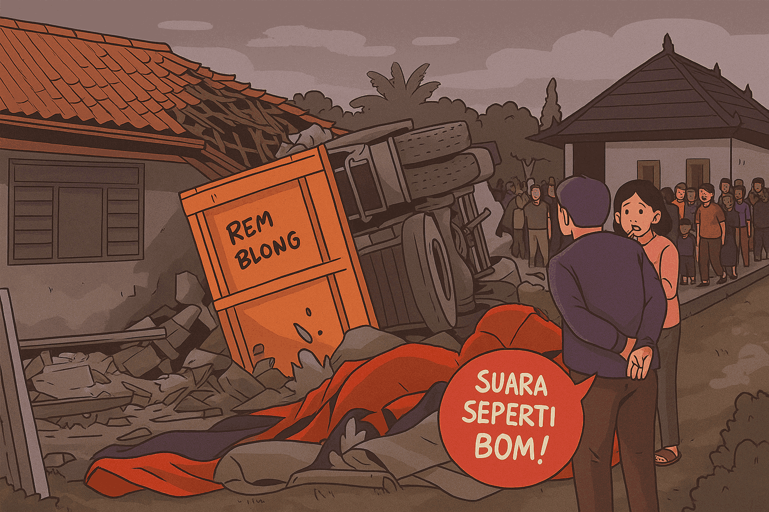 Sebuah truk pengangkut semen yang diduga mengalami kegagalan rem meluncur tak terkendali dari arah utara ke selatan, menabrak sejumlah rumah dan kendaraan warga. Peristiwa tragis ini menyebabkan empat orang kehilangan nyawa.
