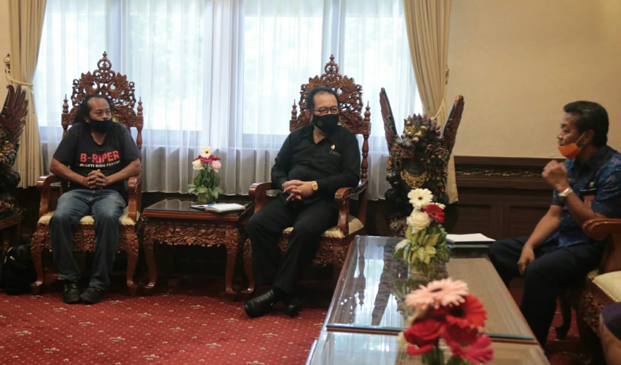 DENPASAR,BALIPUSTAKANEWS – Wakil Gubernur Bali Tjokorda Oka Artha Ardana Sukawati menerima audiensi dari Ketua Komunitas Bhakti Ring Pertiwi (B- Riper) Desa Penebel, Tabanan Putu Parta , di ruang kerjanya, Senin (25/1)