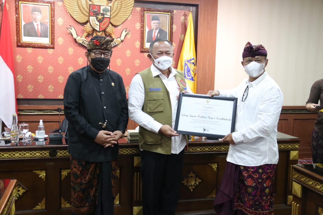 Menanggapi apa yang disampaikan Wagub Cok Ace, Kepala BNPB Letjen TNI Ganip Warsito mengaku sangat memahami situasi yang dihadapi Pulau Dewata. Sebagai daerah yang sebagian besar ekonominya bertumpu pada sektor pariwisata, Bali mengalami dampak ekonomi yang sangat signifikan. “Pariwisata membutuhkan mobilitas manusia, sementara situasi pandemi memaksa kita sementara waktu melakukan pembatasan agar laju penyebaran Covid-19 bisa dikendalikan,” ungkapnya. Menurutnya ada tiga pilar yang perlu dikuatkan dalam strategi penanganan Covid-19 yaitu penerapan protokol kesehatan 3M (memakai masker,rajin mencuci tangan dengan sabun pada air mengalir dan menjaga jarak), optimalisasi 3T (Testing, Tracing dan Treatment) dan cakupan vaksinasi. Untuk cakupan vaksinasi, ia menyebut capaian Bali sangat baik. Dengan road map pengendalian Covid-19 yang telah dirancang pemerintah, ia yakin Bali secepatnya bisa bangkit. Terlebih, pemerintah sangat berkepentingan dengan pulihnya Bali karena pada tahun 2022 mendatang akan menjadi tuan rumah penyelenggaraan GPDRR. Dijelaskan Ganip, GPDRR merupakan forum dua tahunan yang dibentuk United Nations Office for Disaster Risk Reduction (UNDRR). Forum ini bertujuan meninjau kemajuan berbagai pengetahuan, mendiskusikan perkembangan dan trend terbaru dalam penanganan kebencanaan. Forum tersebut rencananya akan dihadiri 193 negara dengan 5 ribu hingga 7 ribu peserta. “Itu sebabnya, kita sangat berkepentingan dengan upaya pemulihan Bali. Ini juga kesempatan yang sangat baik untuk menganggap citra kita,” imbuhnya.