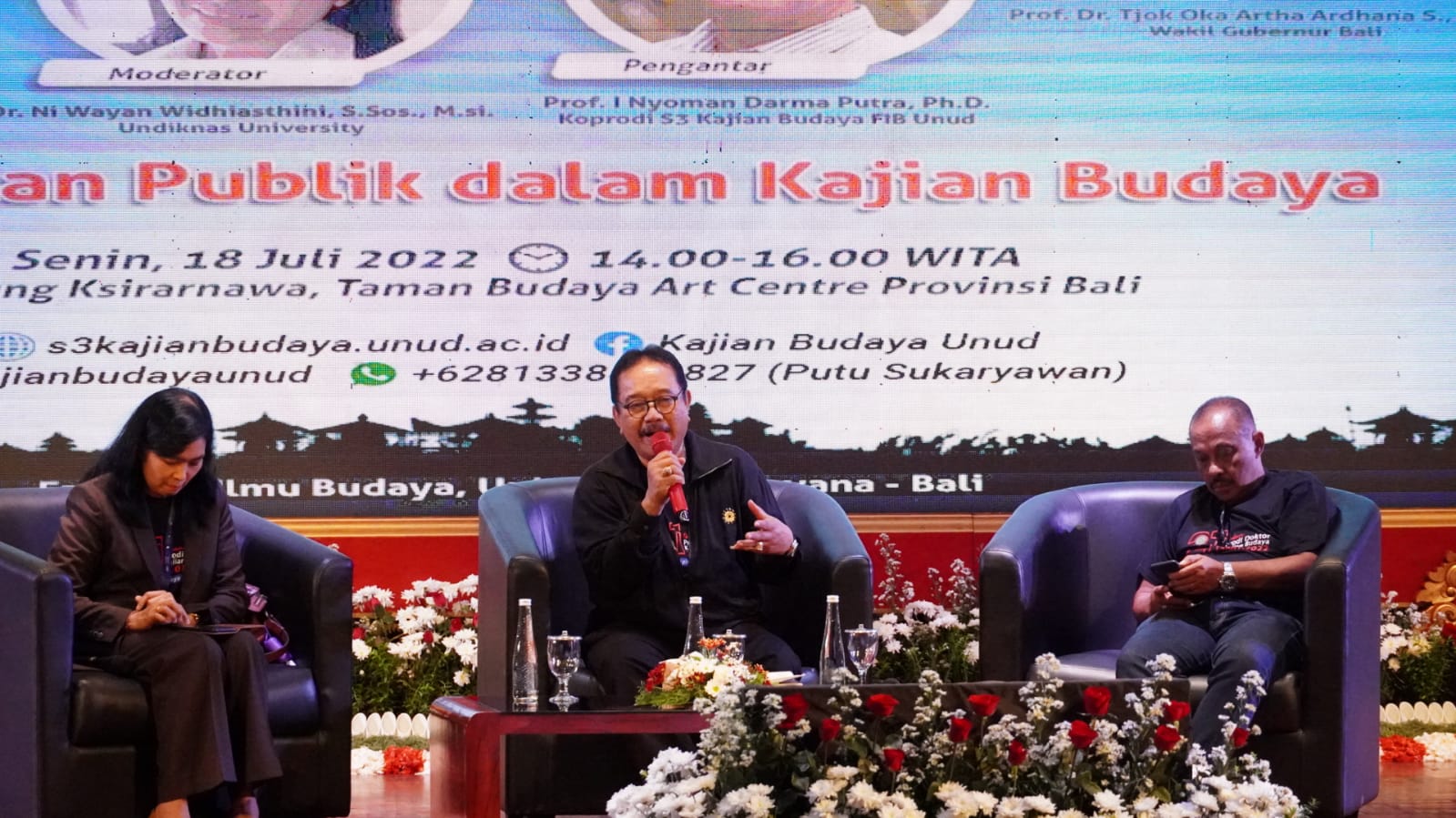 BALIPUSTAKANEWS,DENPASAR – Wakil Gubernur Bali Prof. Tjok Oka Sukawati didaulat sebagai salah satu narasumber pada acara Ulang Tahun Program Studi Doktor Ilmu Kajian Budaya UNUD ke-21 Tahun yang dirangkaikan dengan Seminar dan Reuni, bertempat di Gedung Ksirarnawa, Taman Budaya Denpasar pada Senin, Soma Kliwon Krulut (18/7).