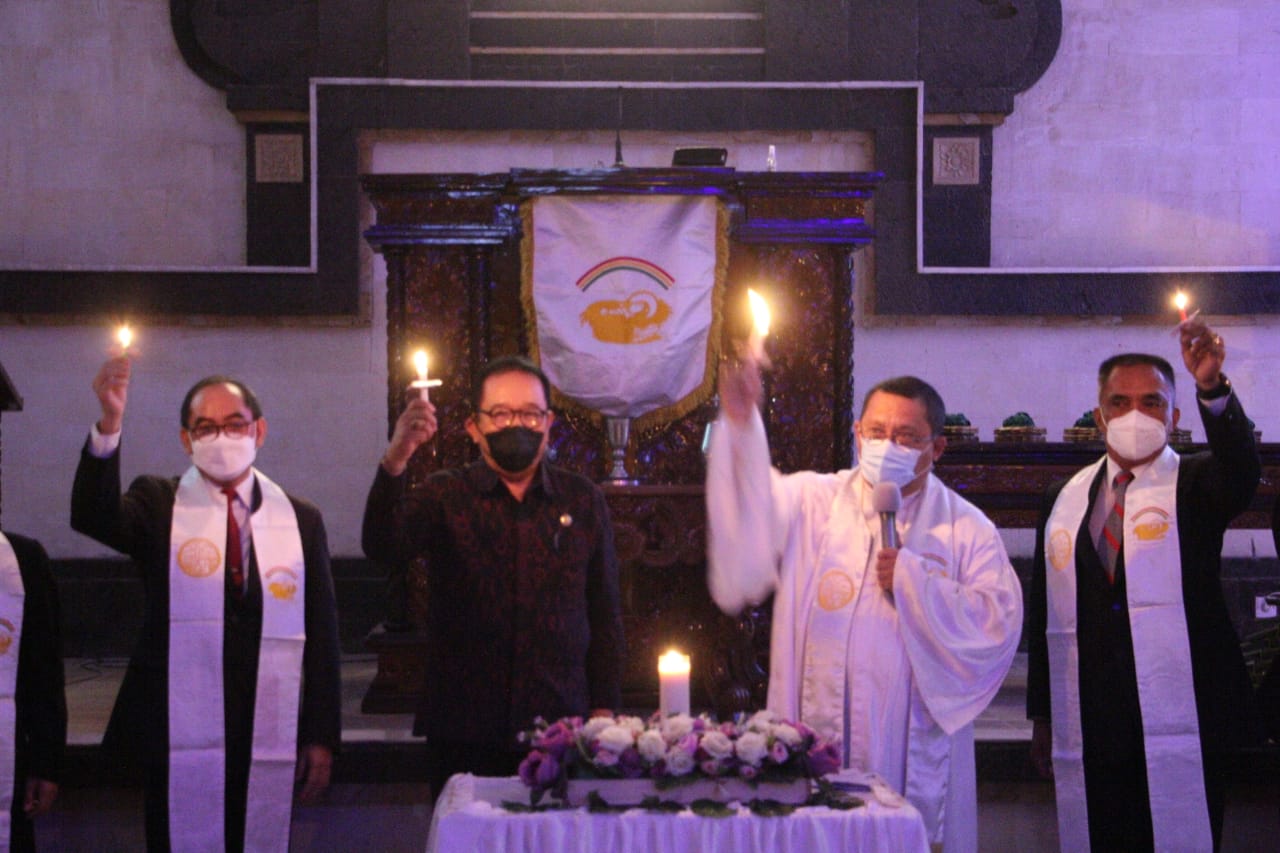 Dengan mengangkat tema “Cinta Kasih Kristus Yang Menggerakan Persaudaraan” dan Sub tema “Menjadi Tangan Allah Yang Merangkul Sesama”, melalui ibadah malam natal ini, Wagub Cok Ace mengajak agar seluruh umat kristiani yang ada dan berdomisili di Bali, untuk ikut dan turut serta menjadi pelopor keselamatan diri dari paparan Covid-19 dengan cara mematuhi protokol kesehatan kapanpun dan dimanapun berada, sekaligus bersedia selalu mengingatkan tetangga atau rekannya yang menggunakan masker tidak sesuai anjuran.