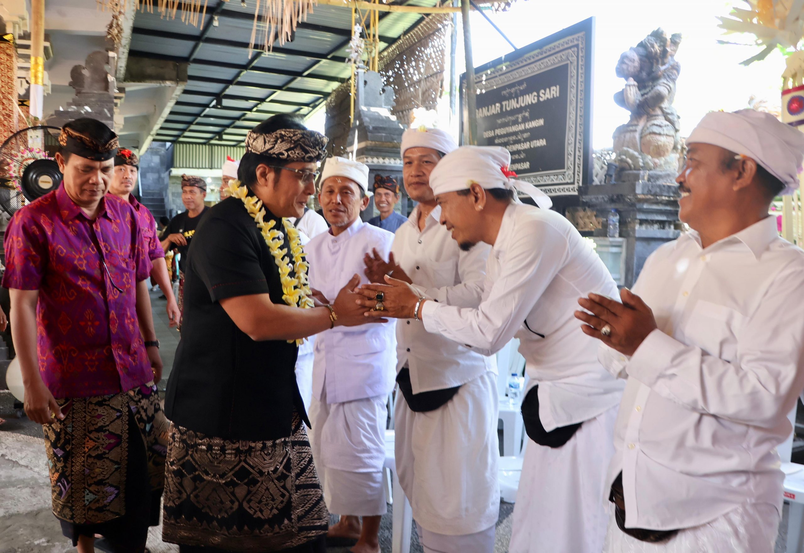 Sebagai bentuk dukungan, Giri Prasta menyerahkan punia Rp50 juta untuk pelaksanaan karya yang diterima langsung Ketua Panitia Wayan Dana, serta Rp5 juta untuk Sekaa Gong Banjar Tunjung Sari.