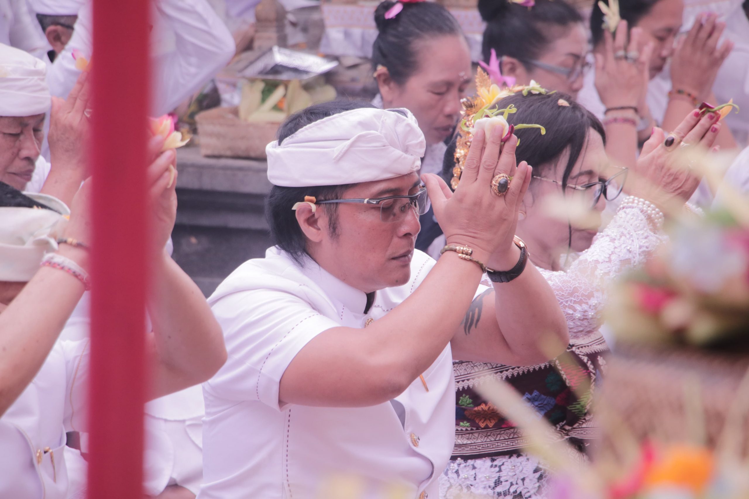 Dengan wajah teduh dan penuh ketulusan, Wagub Giri Prasta mengawali prosesi dengan persembahyangan di Pelinggih Ida Bhatara Lingsir. Dalam suasana ning lan lascarya, doa-doa dipanjatkan dalam keheningan yang khusyuk. Udara dingin pegunungan tak menyurutkan semangat para pemedek yang datang dari berbagai penjuru.