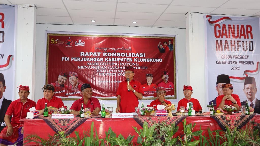 Konsolidasi PDI Perjuangan di Kabupaten Klungkung untuk memenangkan PDI Perjuangan guna meningkatkan perolehan suara dan kursi PDI Perjuangan di DPRD Klungkung, DPRD Bali, dan DPR RI serta memenangkan GANJAR-MAHFUD satu putaran di tingkat nasional, dan 95% di Bali. Seluruh Struktur Partai PDI Perjuangan Kabupaten Klungkung, baik dari DPC Partai, PAC Partai, dan Ranting Partai serta para Caleg DPRD Bali, dan DPRD Kabupaten Klungkung memberikan apresiasi atas kesuksesan kepemimpinan Ketua DPD PDI Perjuangan Provinsi Bali