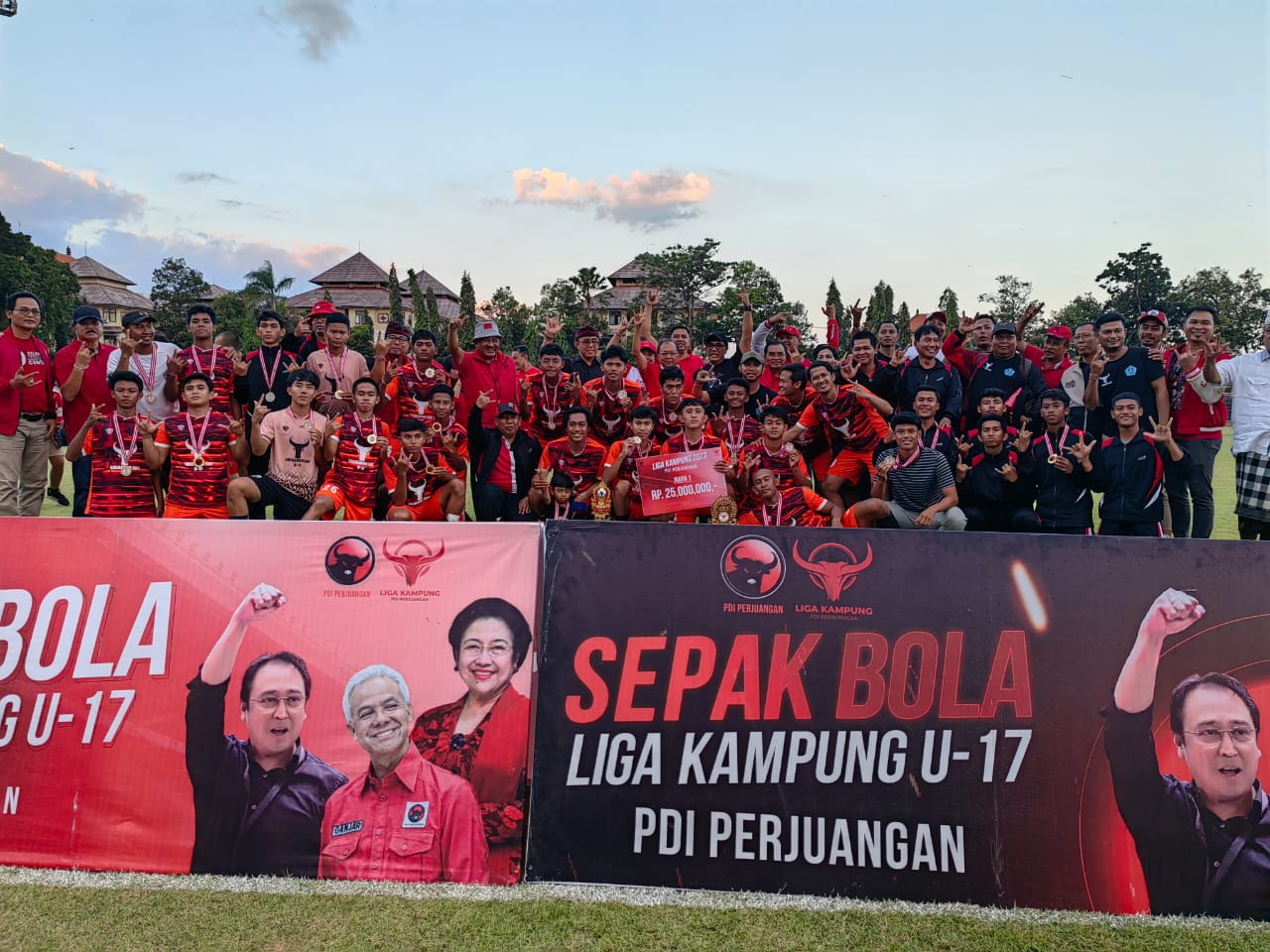 Penyerahan Piala Liga Kampung U-17 PDI Perjuangan ke Tim DPC Kota Denpasar disaksikan langsung oleh Anggota DPR RI Dapil Bali, I Made Urip, Sekretaris DPD PDIP Provinsi Bali, IGN Jaya Negara bersama jajarannya, Ketua DPC PDIP Kota Denpasar, I Gusti Ngurah Gede, Ketua DPC PDIP Kabupaten Tabanan, I Komang Gede Sanjaya, Ketua DPC PDIP Badung, I Nyoman Giri Prasta, Ketua DPC PDIP Karangasem, I Gede Dana, Sekretaris DPC PDIP Denpasar, Kadek Agus Arya Wibawa, Wakil Bupati Tabanan, I Made Edi Wirawan, Wakil Ketua DPC PDIP Tabanan, I Made Dirga, Sekretaris DPC PDIP Buleleng, Gede Supriatna serta puluhan ribu kader PDI Perjuangan bersama masyarakat Bali.